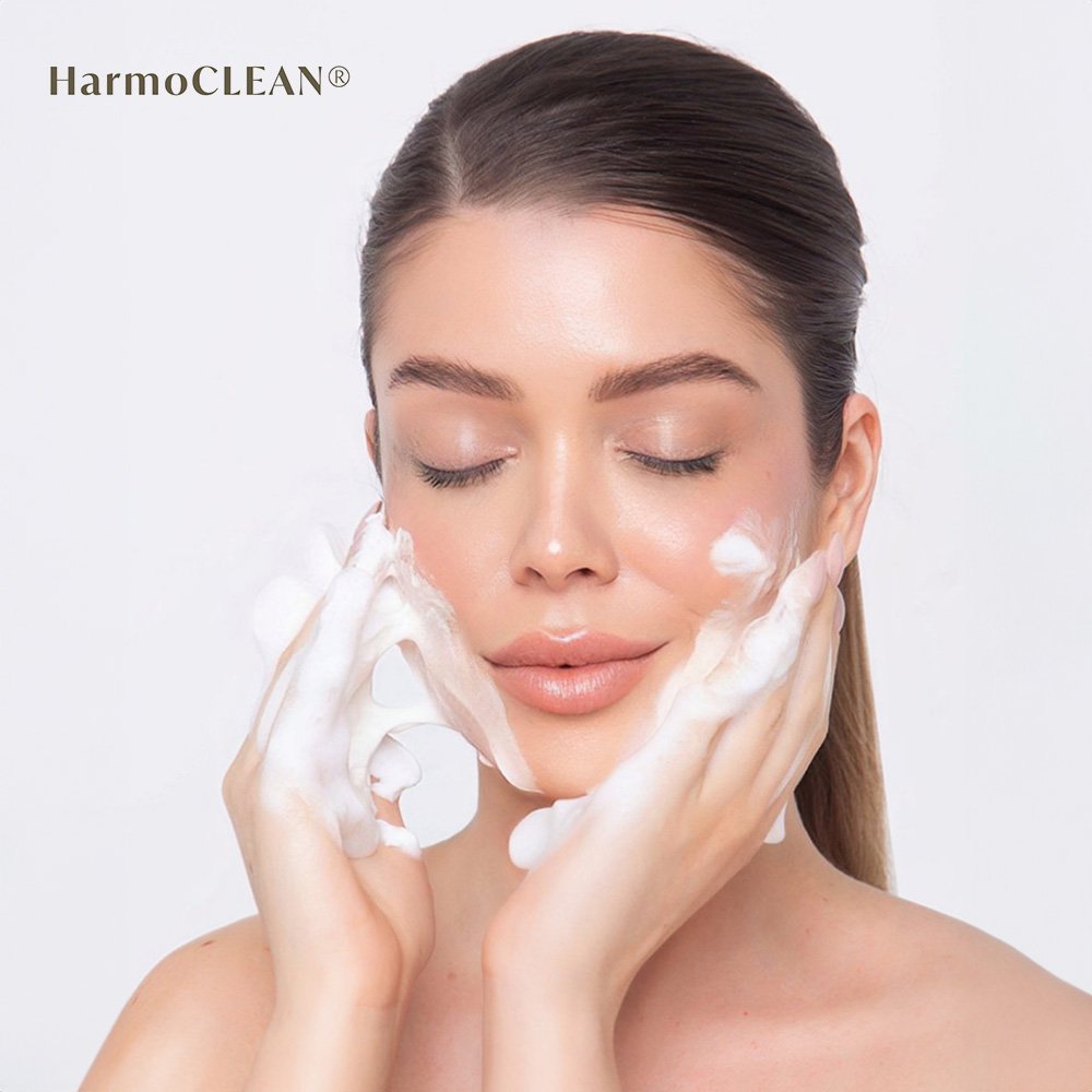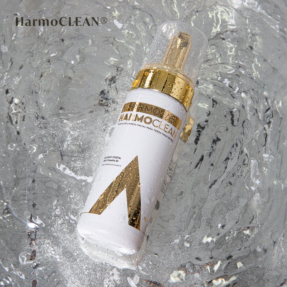 Harmoclean é uma loção hidratante que transforma-se em uma espuma rica e aerada que remove maquiagem, limpa,