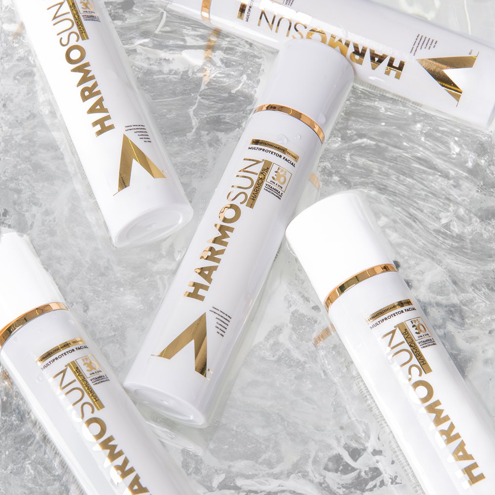 Harmosun é um creme-gel com fórmula inovadora que contém FPS 30 + Vitamina C + Niacinamida. Protege a pele contra os efeitos nocivos do sol ao mesmo tempo que estimula a produção de colágeno e inibe a síntese de melanina, atenuando fotoenvelhecimento, perda de elasticidade e hiperpigmentação. Promove efeito clareador, prevenindo e tratando eficazmente rugas e manchas, resultando em pele mais firme, uniforme e luminosa.